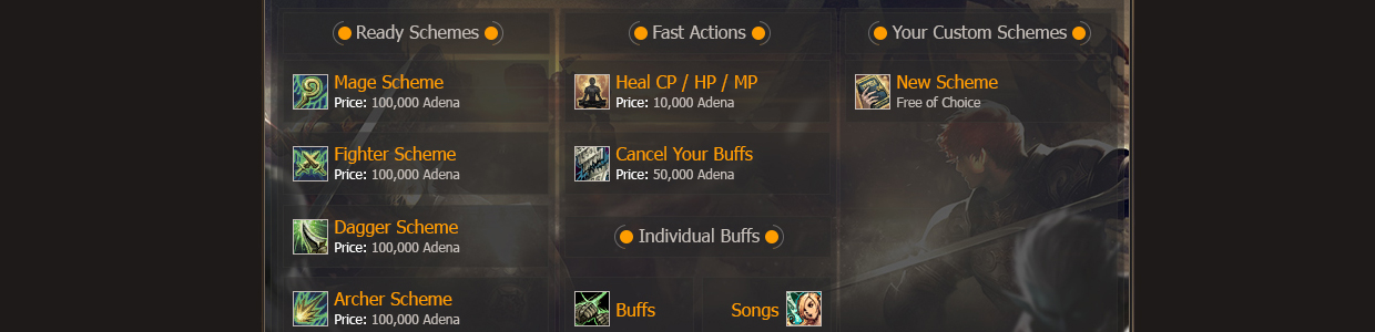 La mayoría de los jugadores en nuestra comunidad están acostumbrados al cliente kamael/essence, por lo que en Melior también tendremos la interfaz moderna Essence. El sistema Autofarm sin retrasos funcionará perfectamente con buffs de 8 horas. Sin embargo, notamos que el sistema de venganza estará desactivado (junto con la función de "compartir ubicación y teletransportarse a jefes").