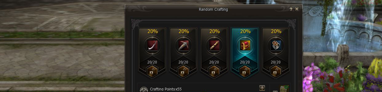 - En la ventana de Fabricación Aleatoria se muestran 5 objetos aleatorios en ranuras;